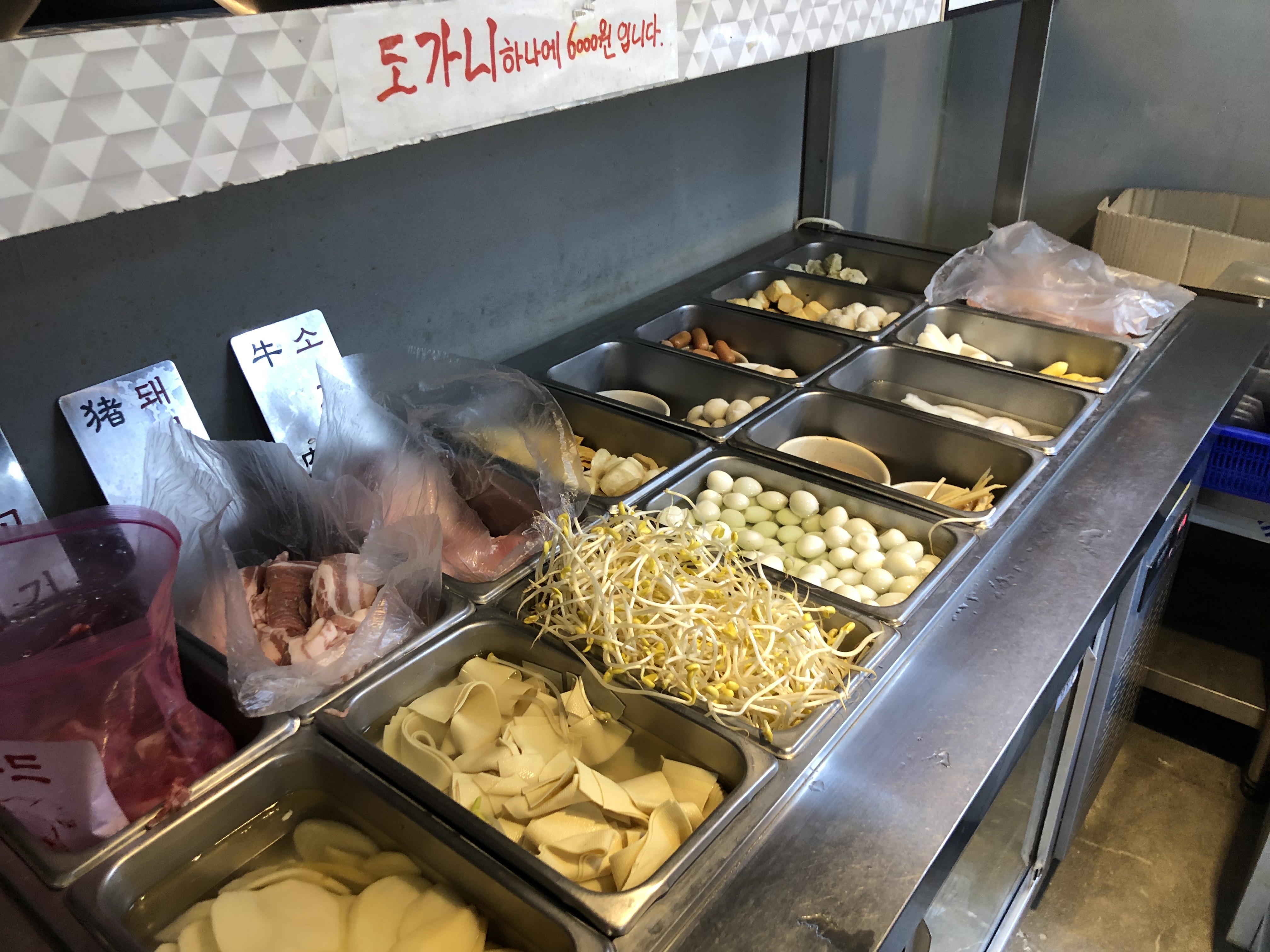 마라샹궈를 만들기 위해 재료를 선택하는 곳인데, 두 군데로 나눠져 있습니다.