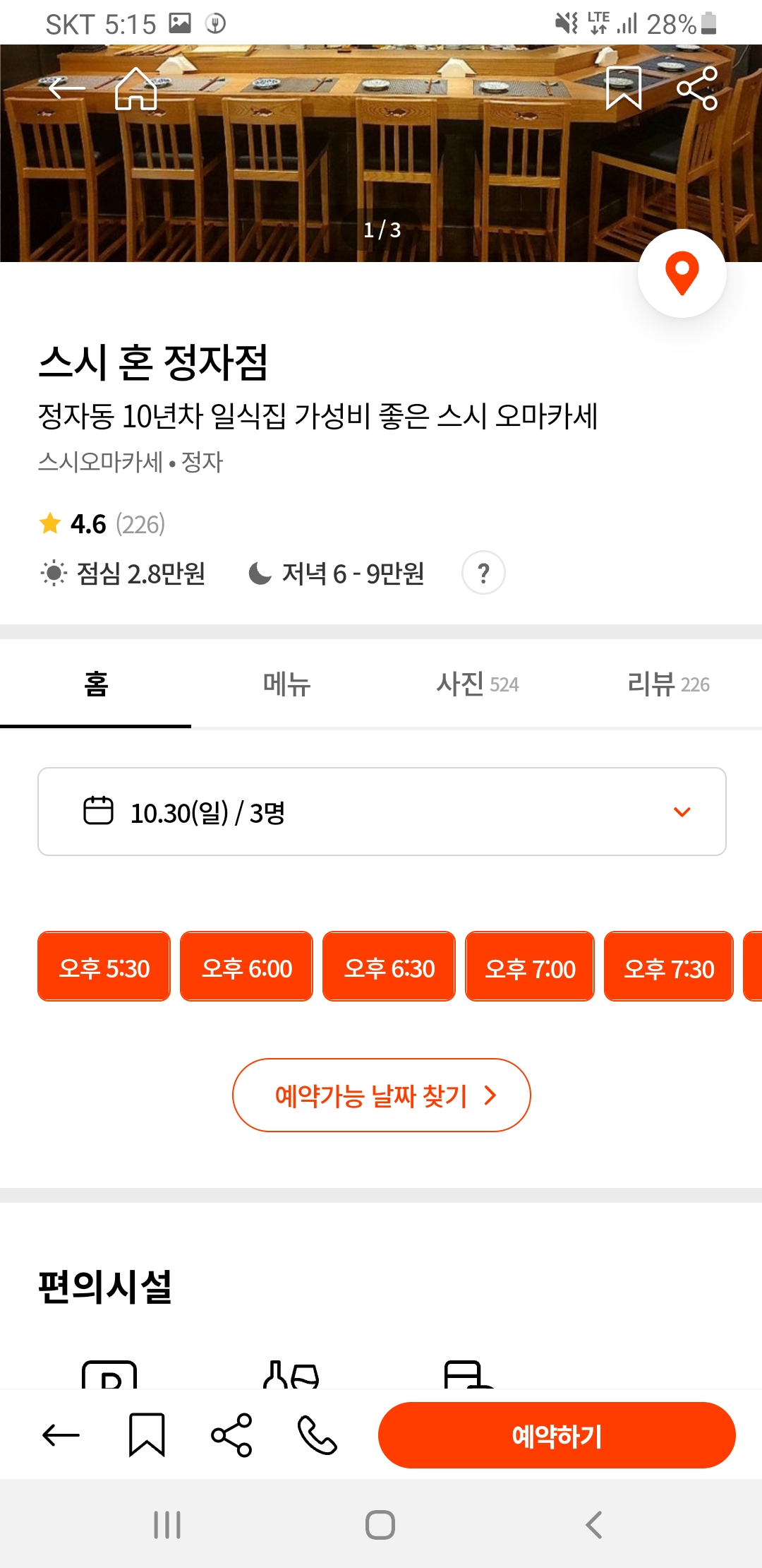 예약은 '캐치테이블' 이라는 어플을 이용하였습니다.