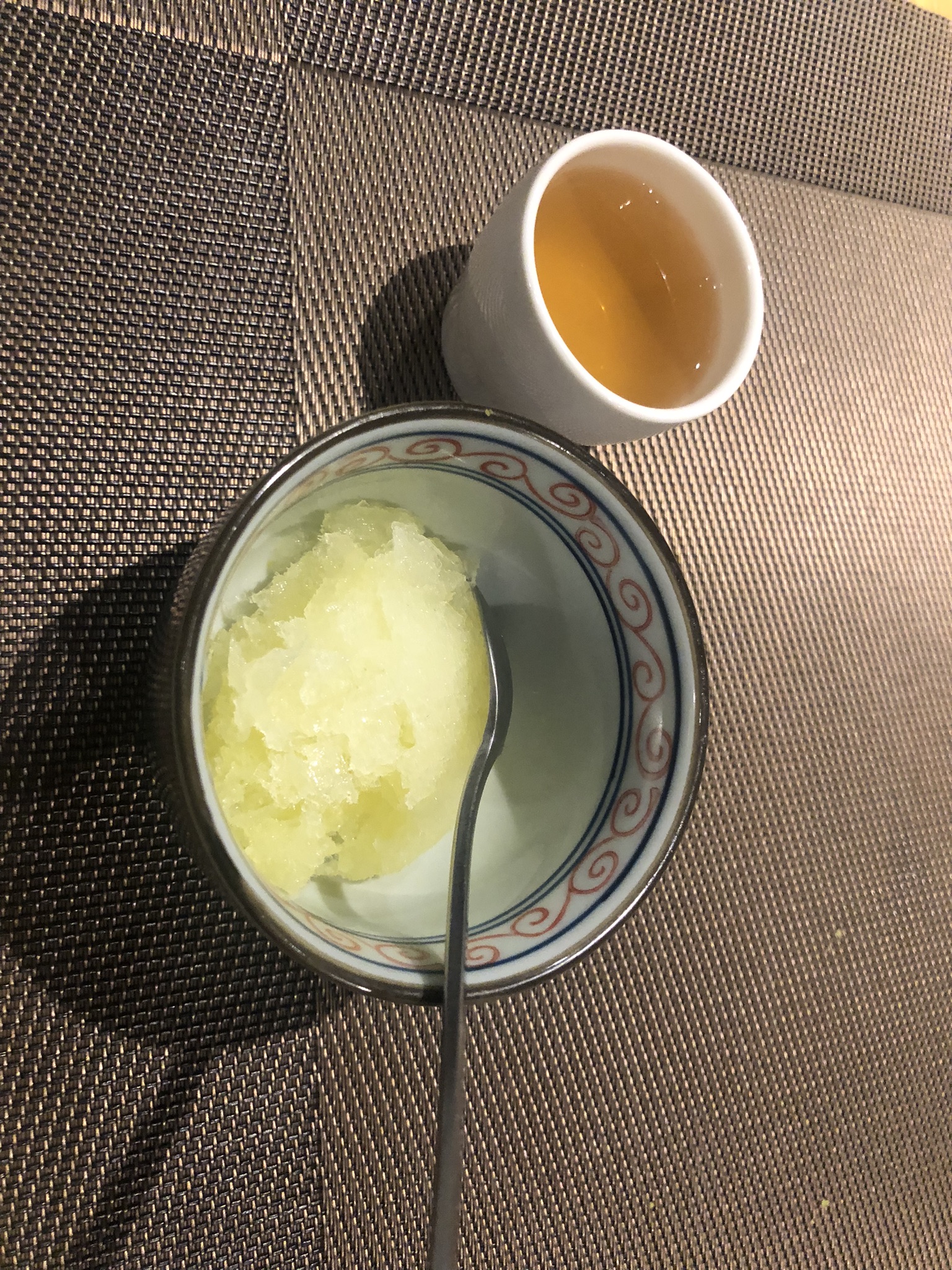 마지막으로 음식들을 다 먹고 나면 표고버섯차와 레몬샤베트가 나옵니다.
