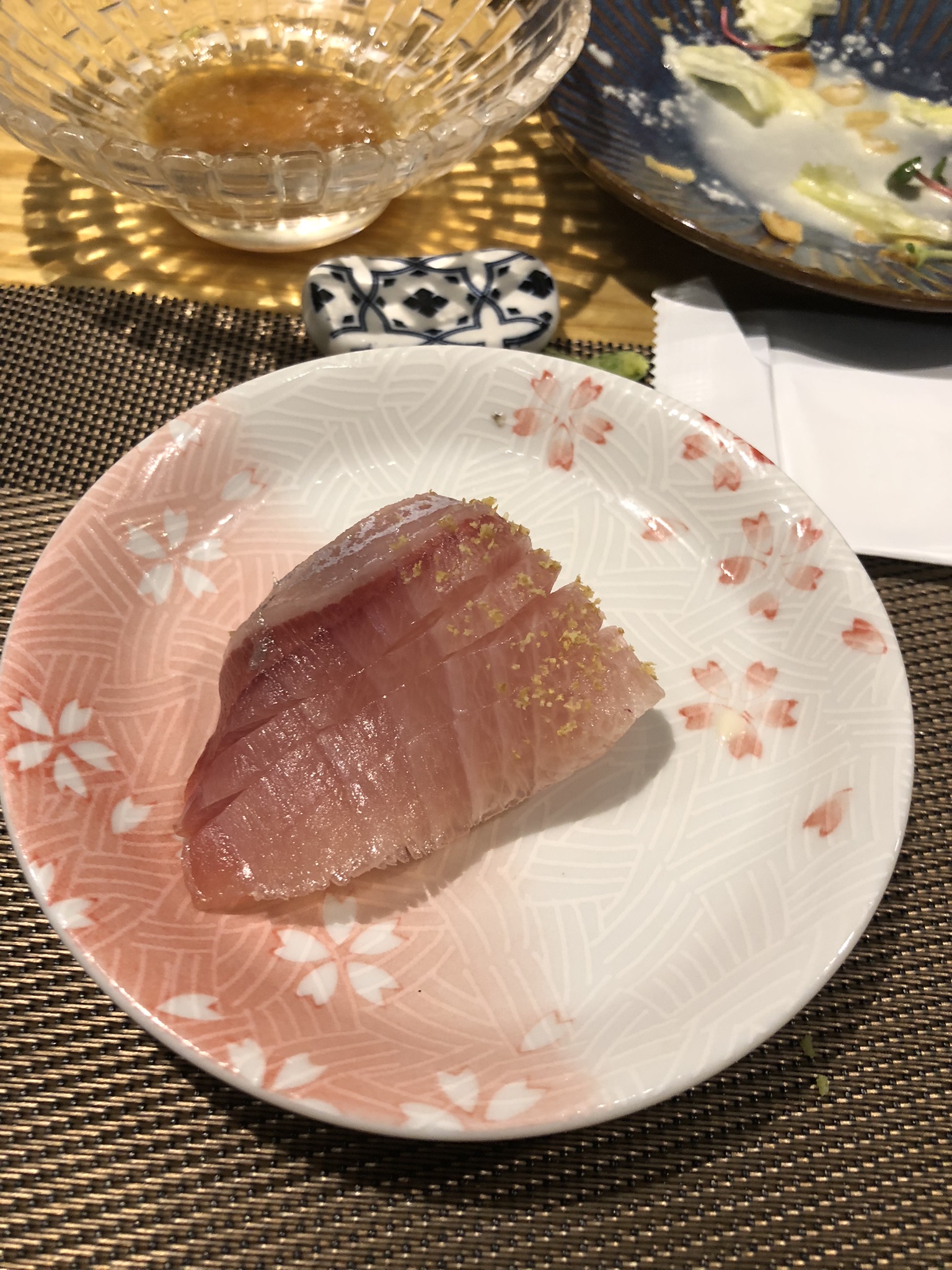 대방어 배살에 유자가루를 묻혔습니다.
